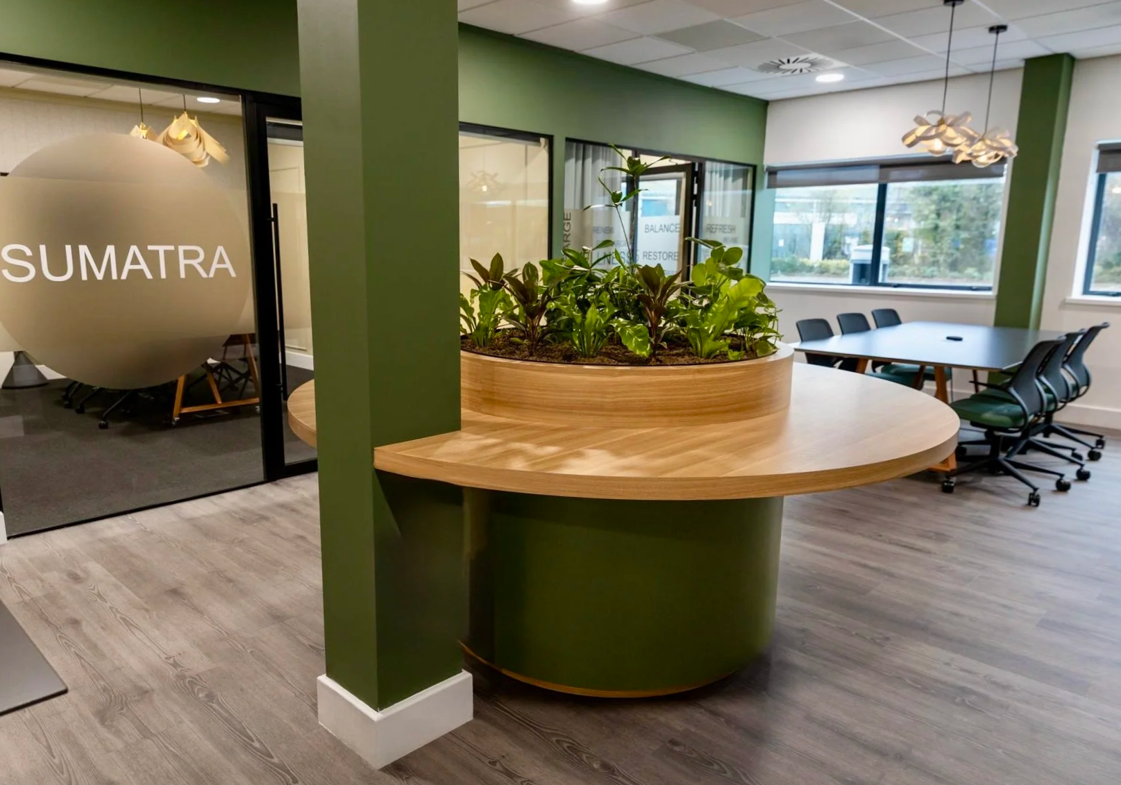 A new meeting suite, was to accommodate 4 meeting rooms with defined capacities, a wellness space, and a central open workspace for hot-desking